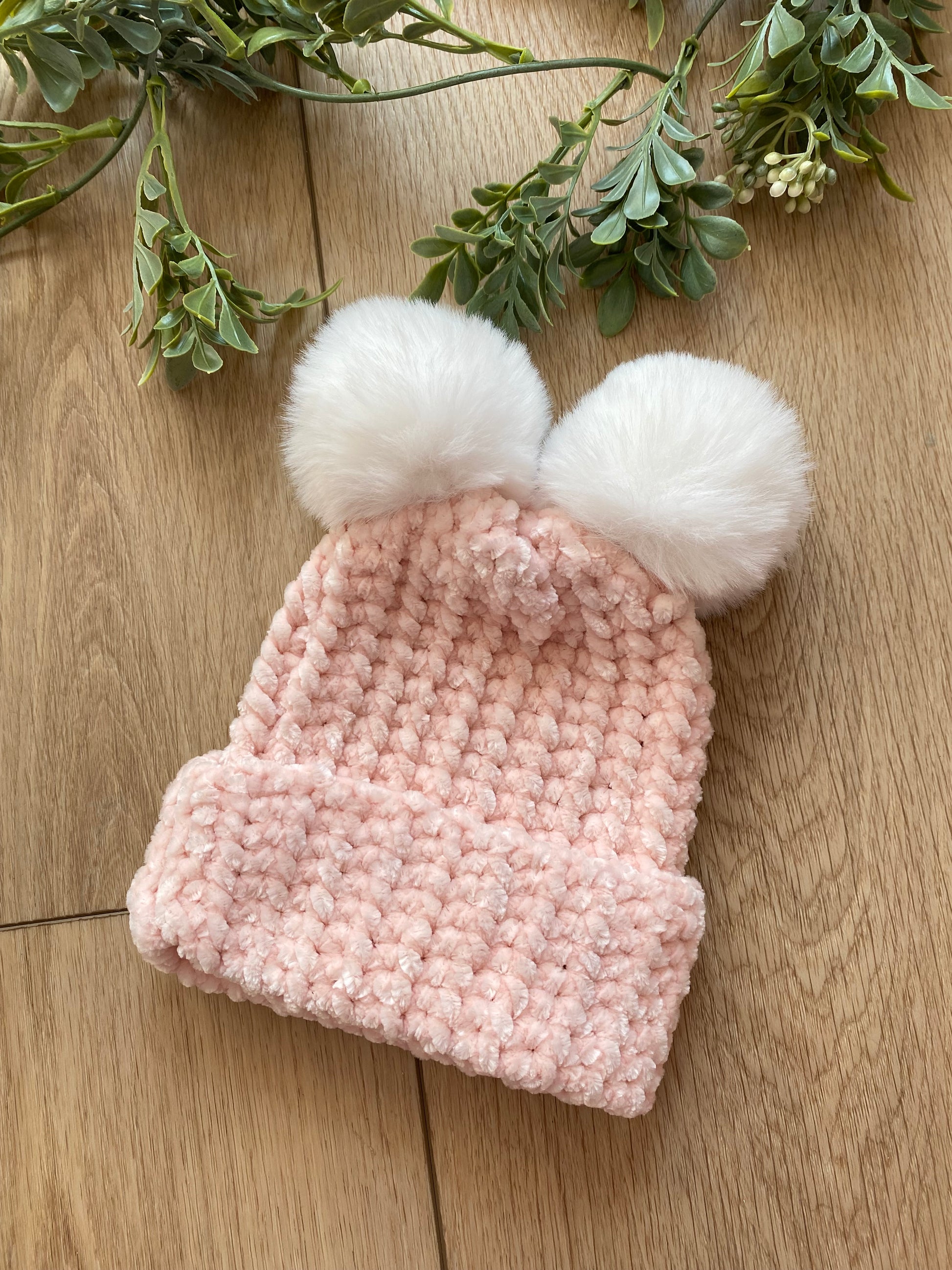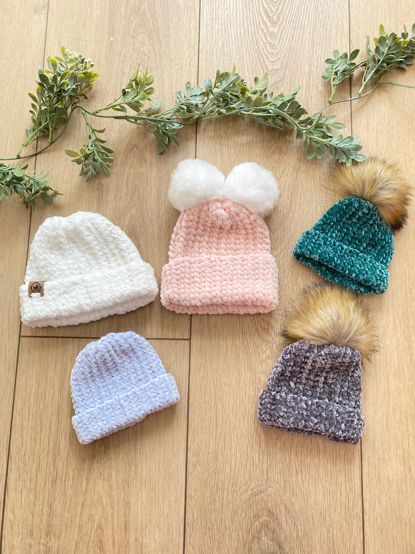 What's the warmest and softest hat you'll ever wear? THESE velvet beanies! Customize your beanie with your favorite color and pom. These beanies are made with Velvet polyester yarn so they're super smooth and the softest thing you'll ever wear. BONUS !!! Match the whole family this season, these velvet beanies are available in ALL sizes.
